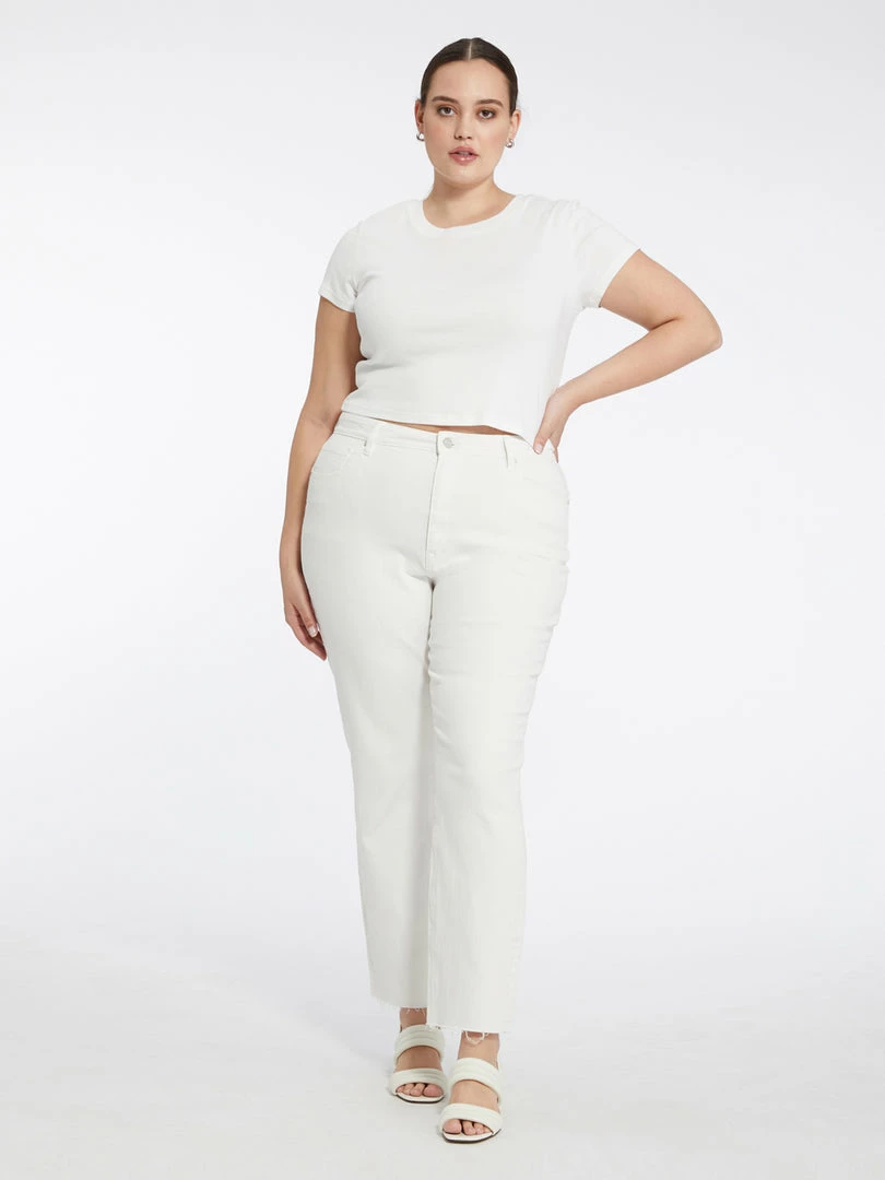Our take on the iconic 90’s style, this rigid denim is complete with a relaxed silhouette that’s fitted through the thighs. The cool straight leg is paired with a waist-accentuating high rise and effortless raw hem.