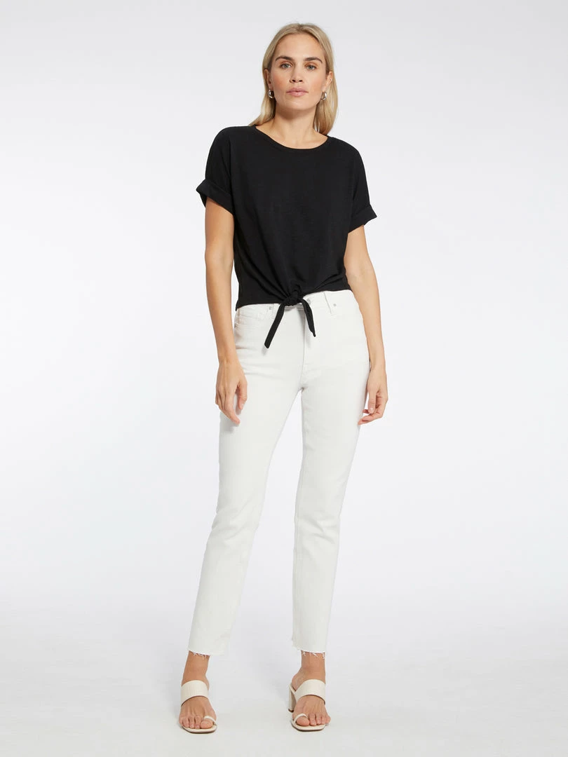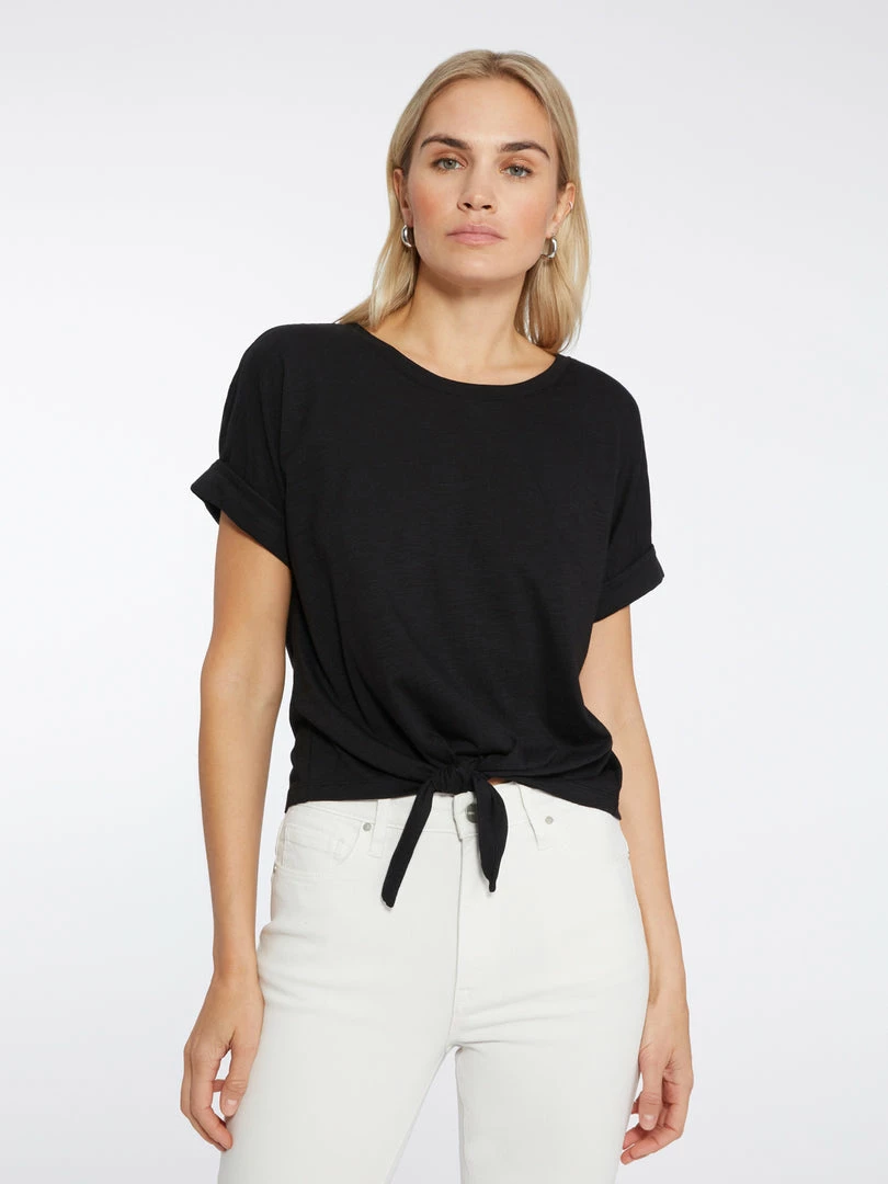 A knotted tie and rolled cuffs add understated casual chic to this essential slubbed cotton crew neck t-shirt with dropped shoulders.