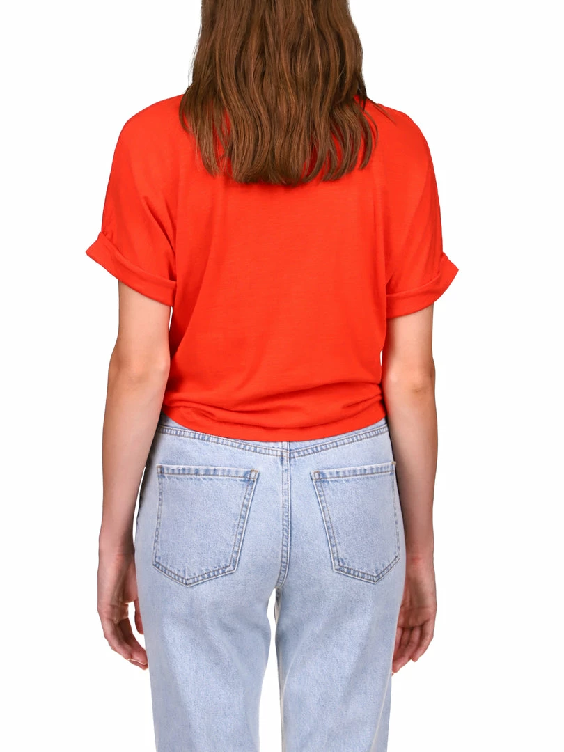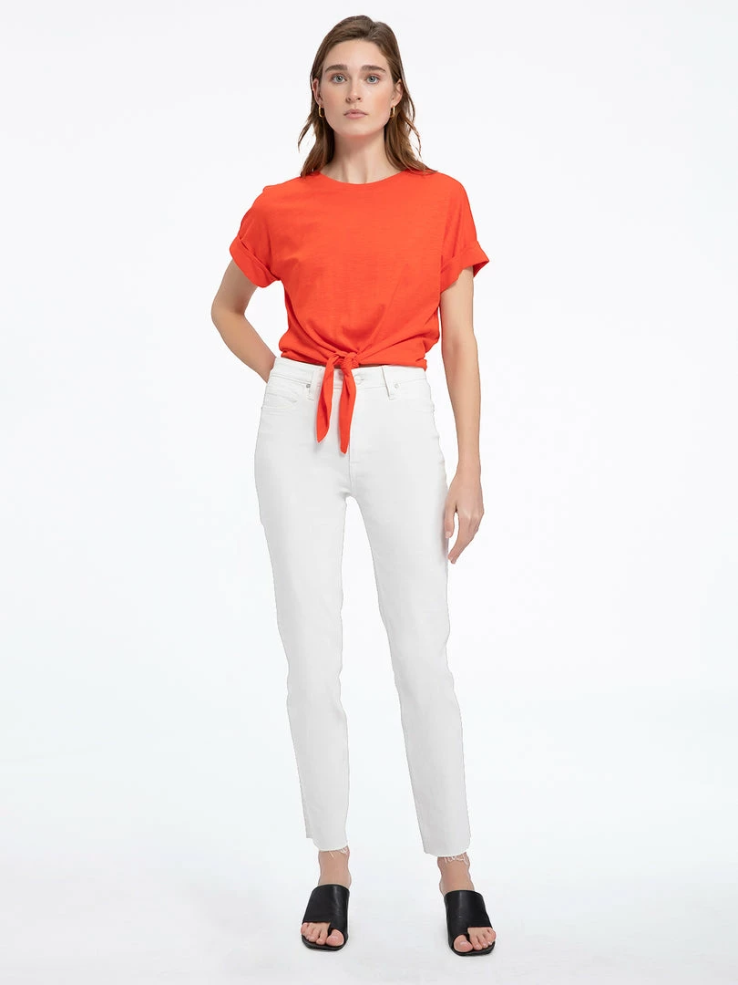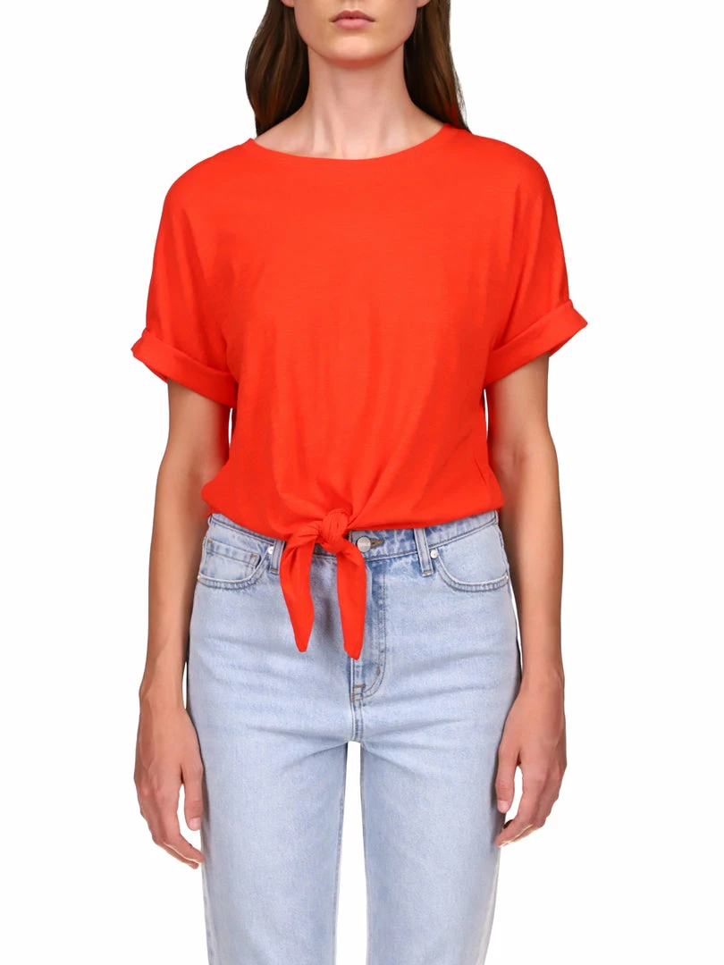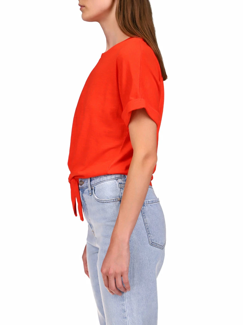 A knotted tie and rolled cuffs add understated casual chic to this essential slubbed cotton crew neck t-shirt with dropped shoulders.