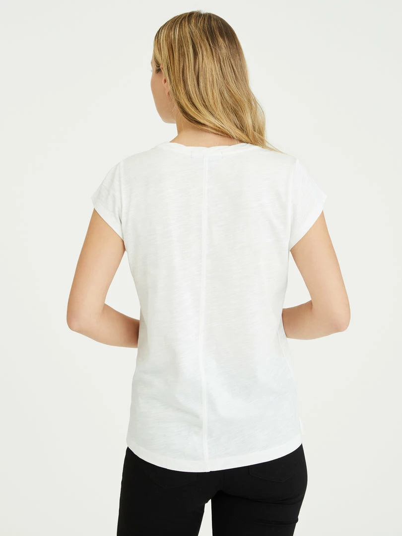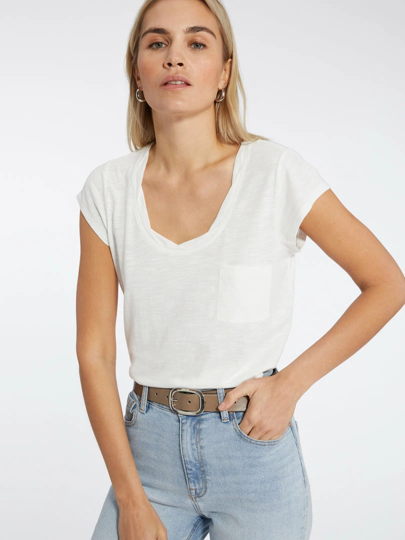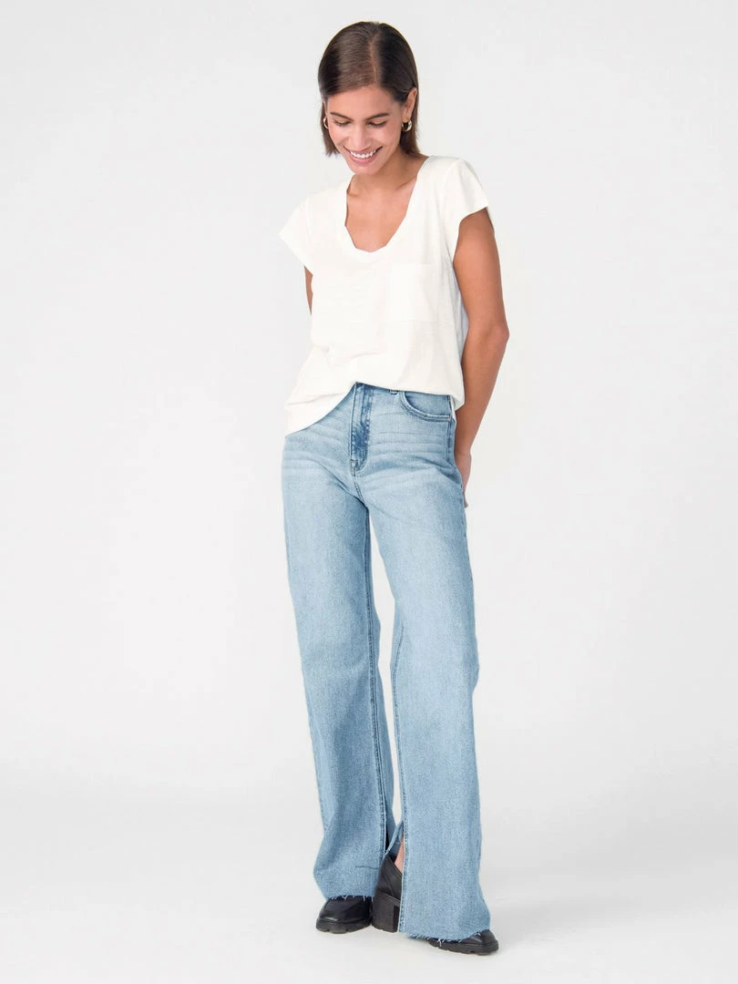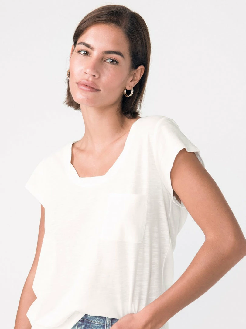 The Traveler Twist Tee is sure to be your new wardrobe staple. This ultra-soft cotton slub knit t-shirt has a classic scoop neck, short sleeves, and a loosely fitted bodice. A twisted neck detail brings the final touch to this sustainably made lightweight tee. We won’t blame you if you rock this essential not-so-basic every single day.