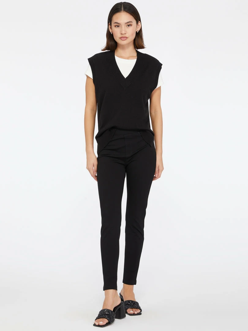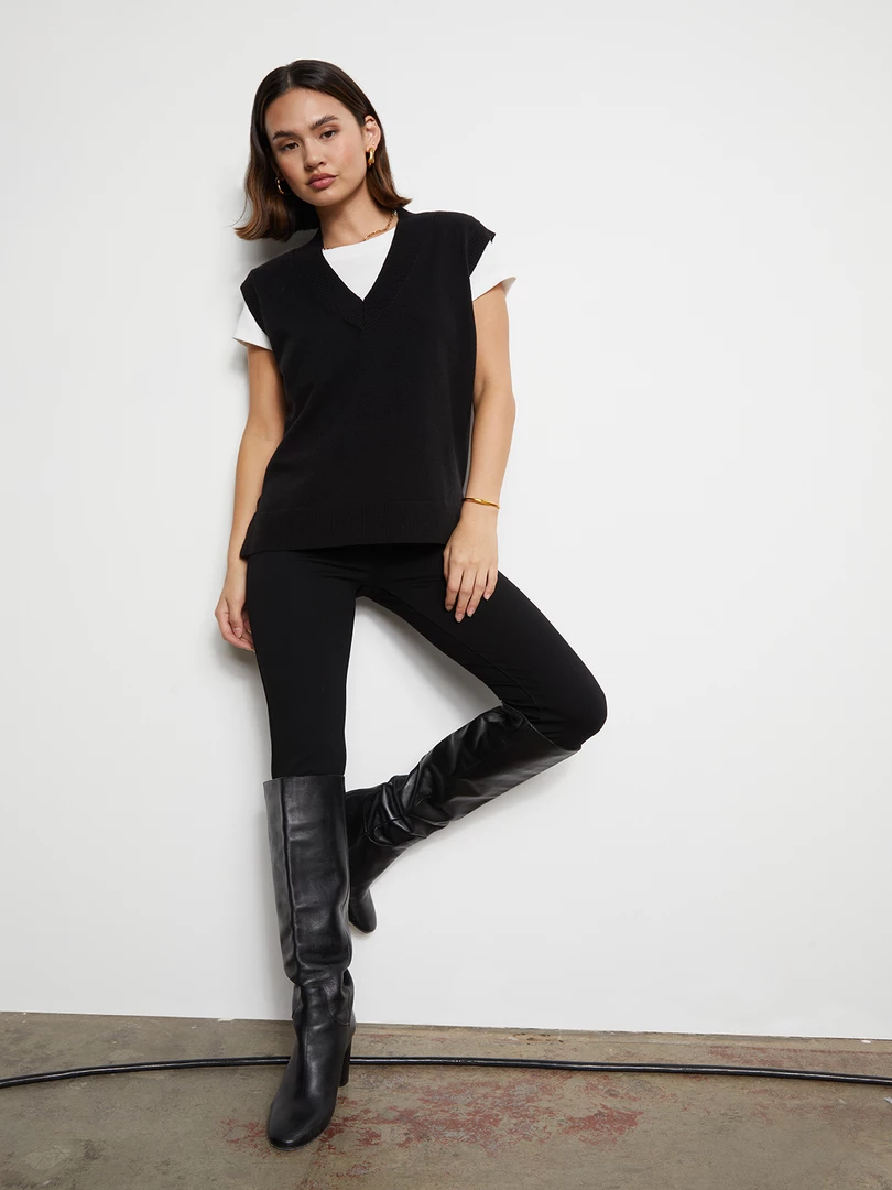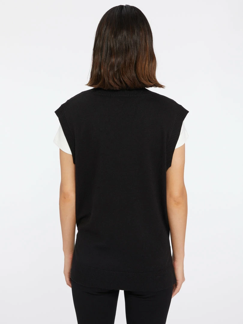 A soft relaxed fit sweater vest with a rib contrast that will give any outfit a preppy feel.