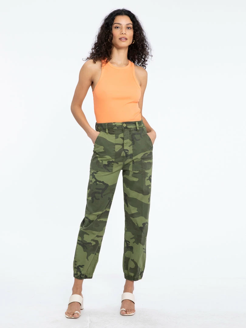 Get the on-trend surplus look with our Ventura High Rise cargo pants. Lightweight, stretch twill fabric shape a high waist with belt loops, a four-pocket cut, and a button/zip fly. A relaxed leg and elastic hem add an ultra laid-back vibe to these military-inspired fashion pant.