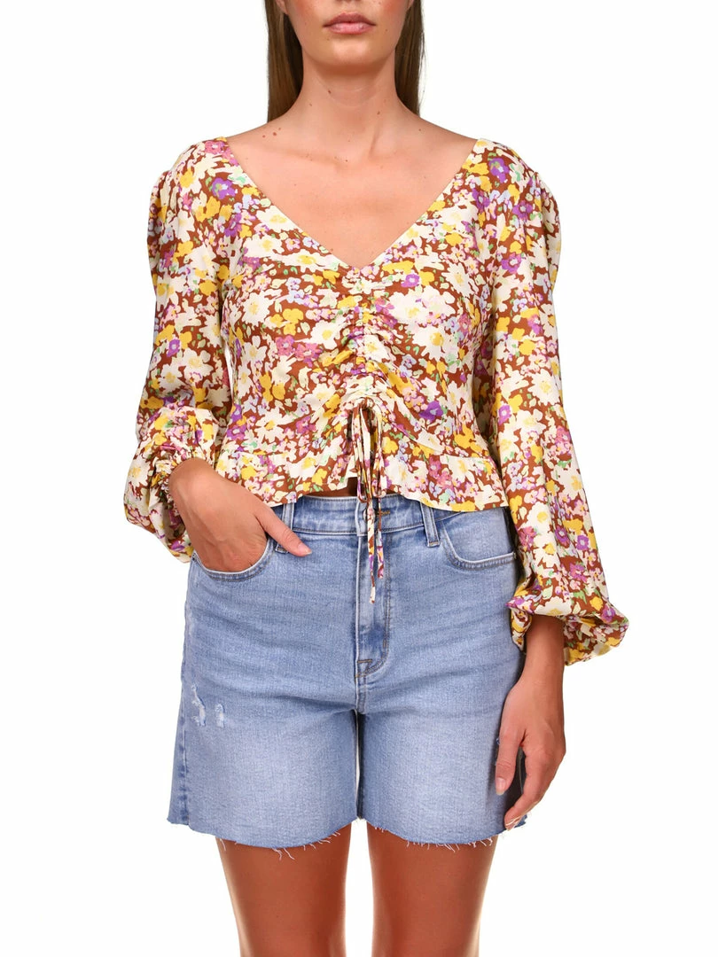 The Drawn To you Top will add a flirty feel to your spring wardrobe. This adorable woven top features a relaxed silhouette with a flounce hem and a drawstring at the bodice that ruches down the center.