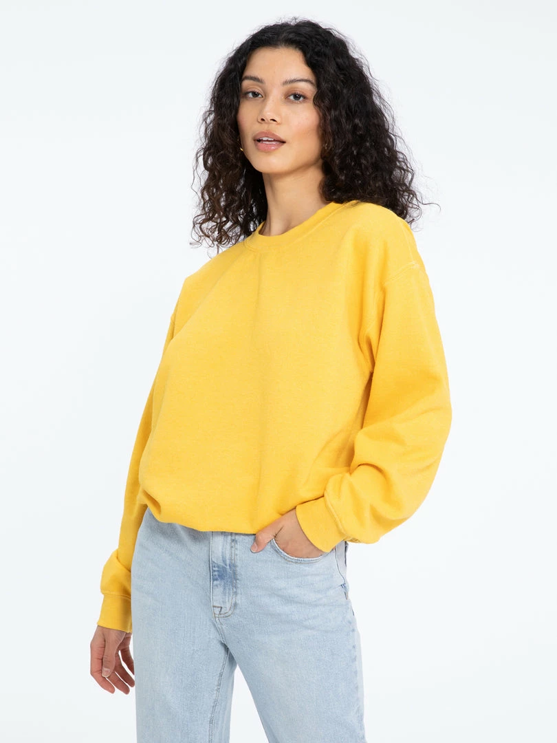Meet the Iconic Sweatshirt—featuring a borrowed-from-the-boys silhouette, each piece is garment dyed by hand in mood-boosting hues inspired by our very own vintage collection.