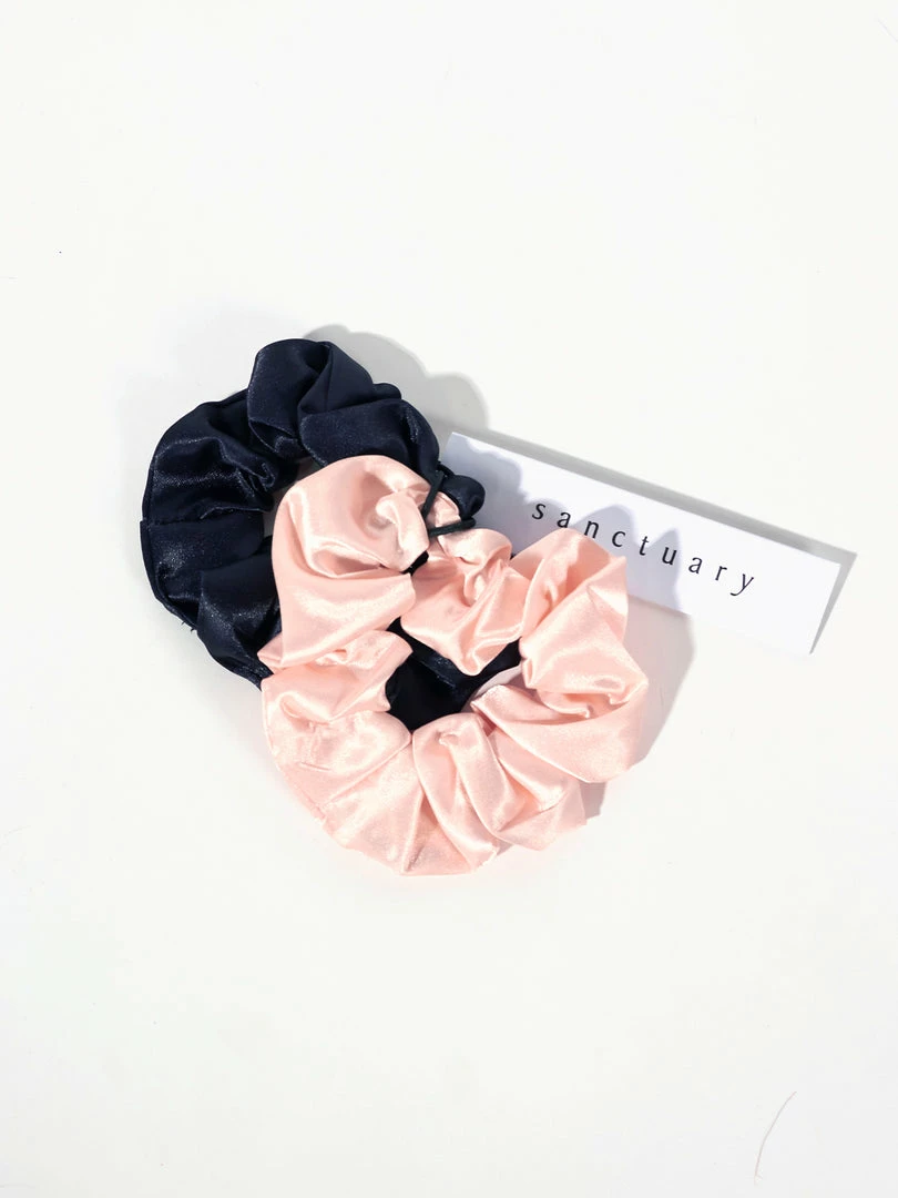 Introducing Sanctuary™s new satin scrunchies. Our lux, satin scrunchies protect your hair from the damaging tugging caused by traditional hair ties. Our high-quality satin reduces ridges and promotes soft, healthy locks.
