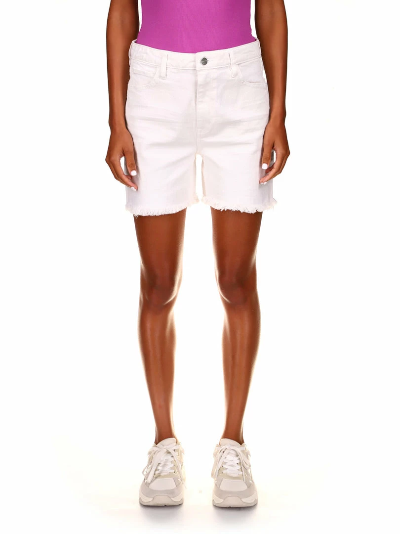 Get your hands on the latest trend of the season with our Sidewalk Ridged Jean Short. Rigid vintage wash denim shapes these shorts complete with a highrise waist and classic five-pocket cut. These slightly easy-fit bottoms feature whiskers with minimal distressing that end at frayed cutoff hems.