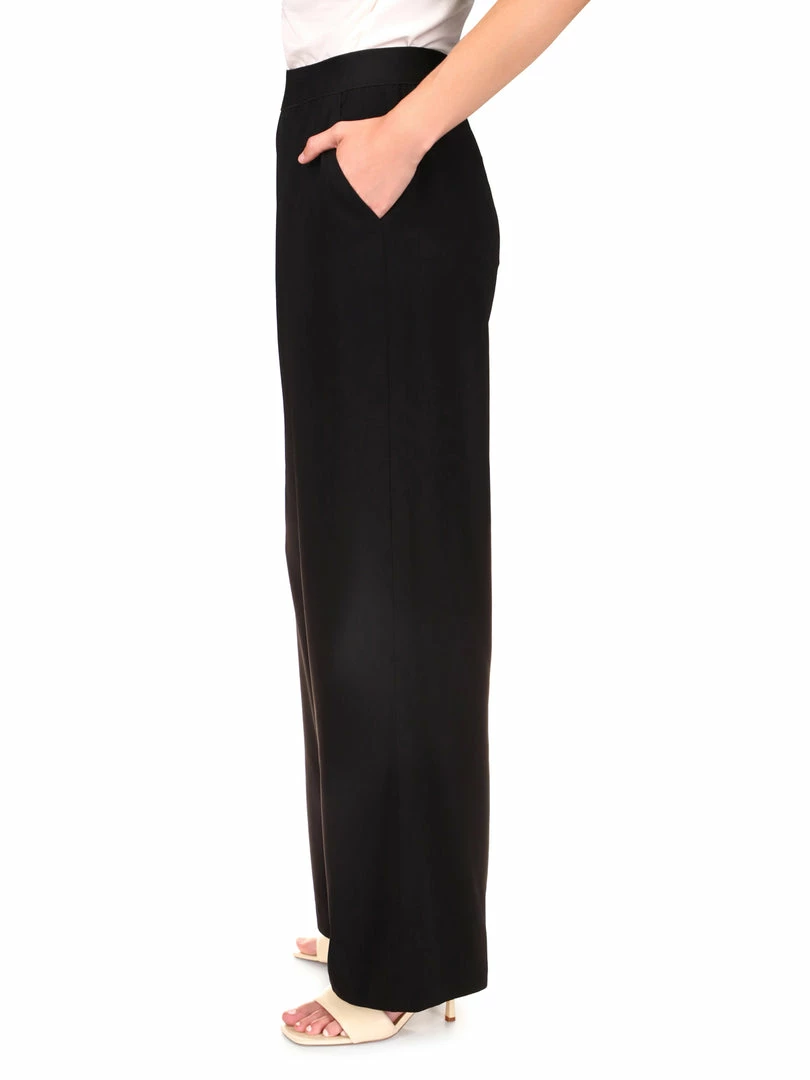Breathe easy in our Juno Wide Leg thanks to a relaxed fit and pull-on elastic waistband. A versatile office-to-party style, these high-rise pants are constructed from a blend of sustainable, recycled fabric.