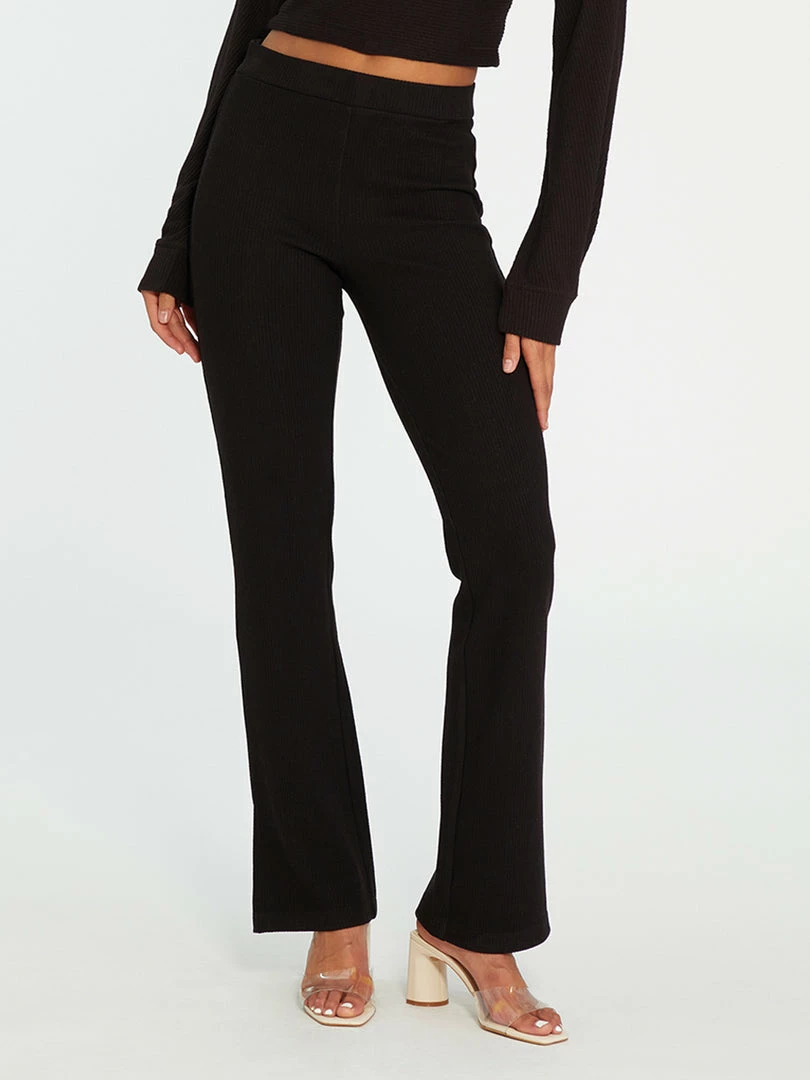 Ready for a night out, these ribbed flare leggings style you right, featuring a flattering high-waisted fit and ankle slits.