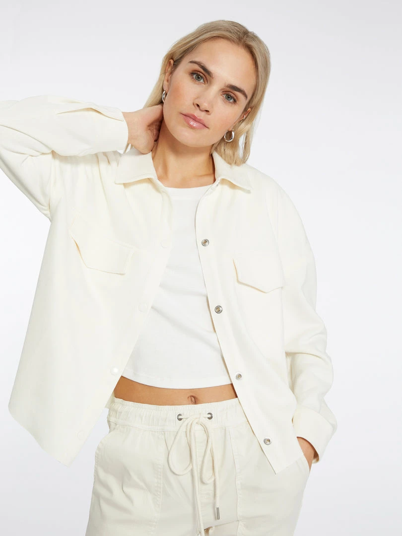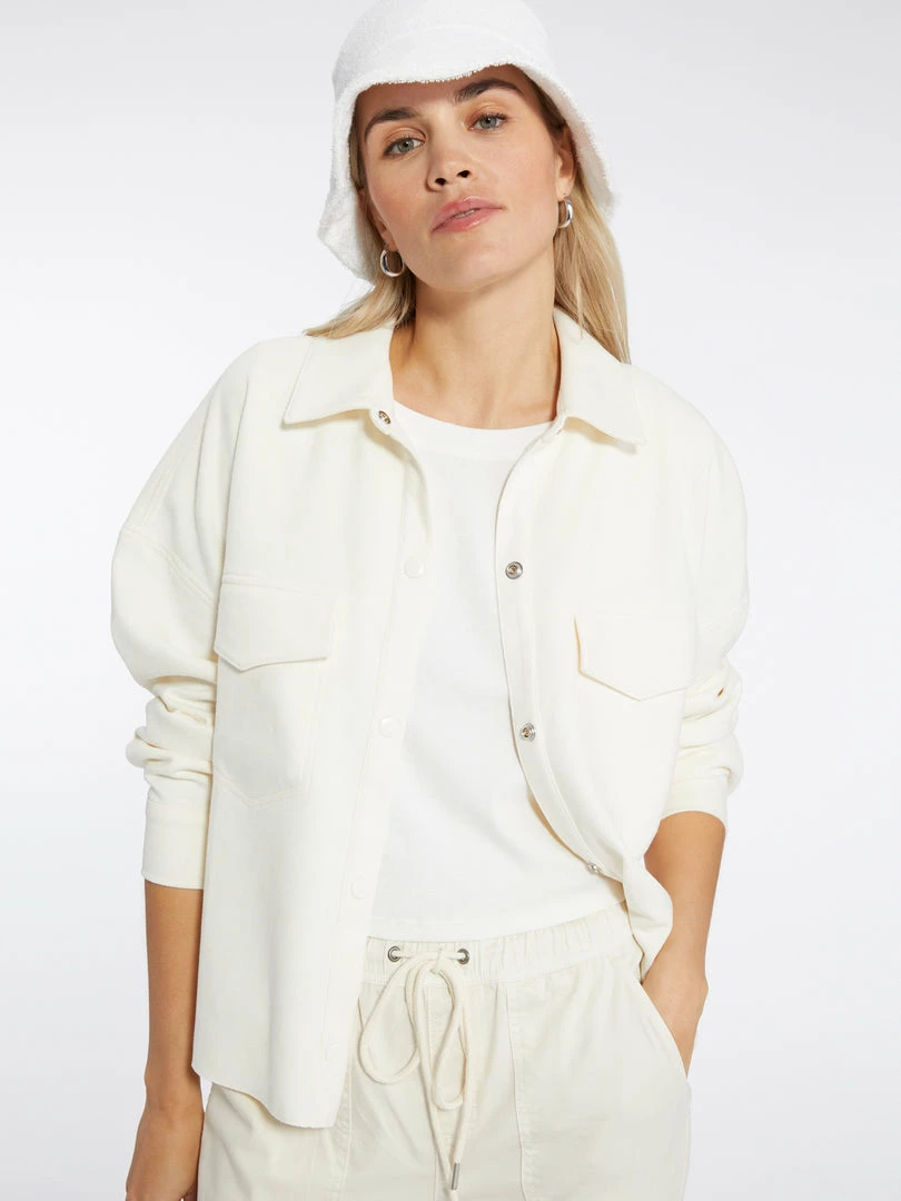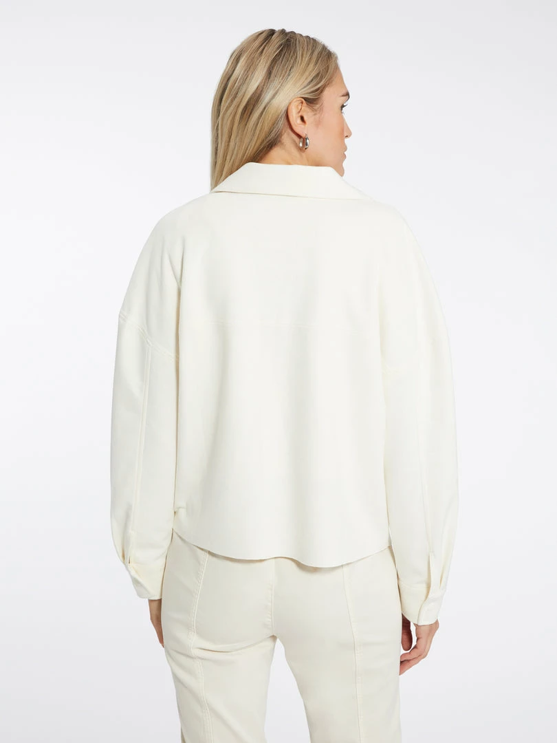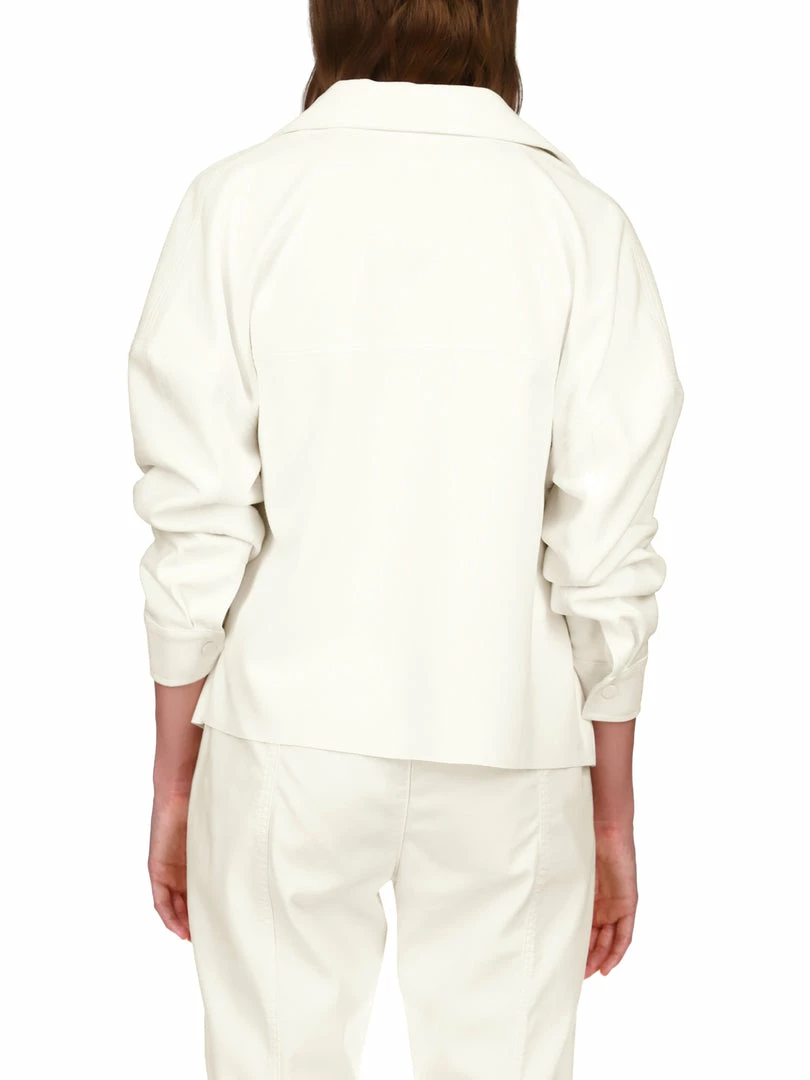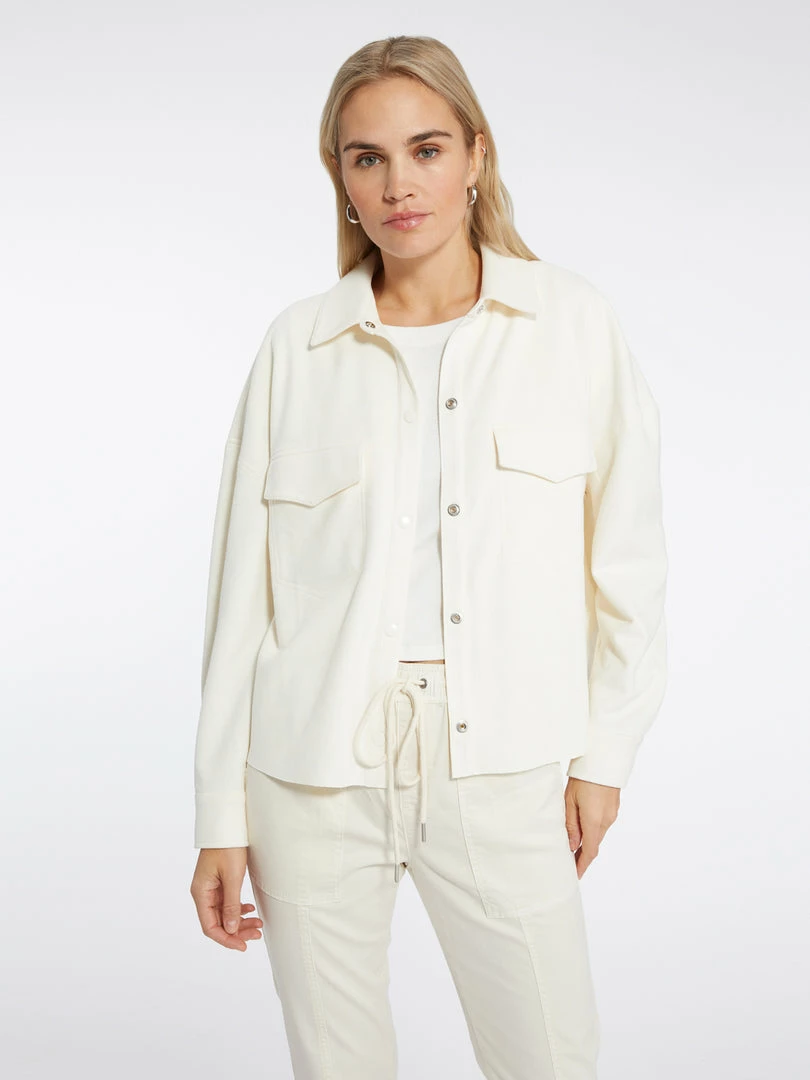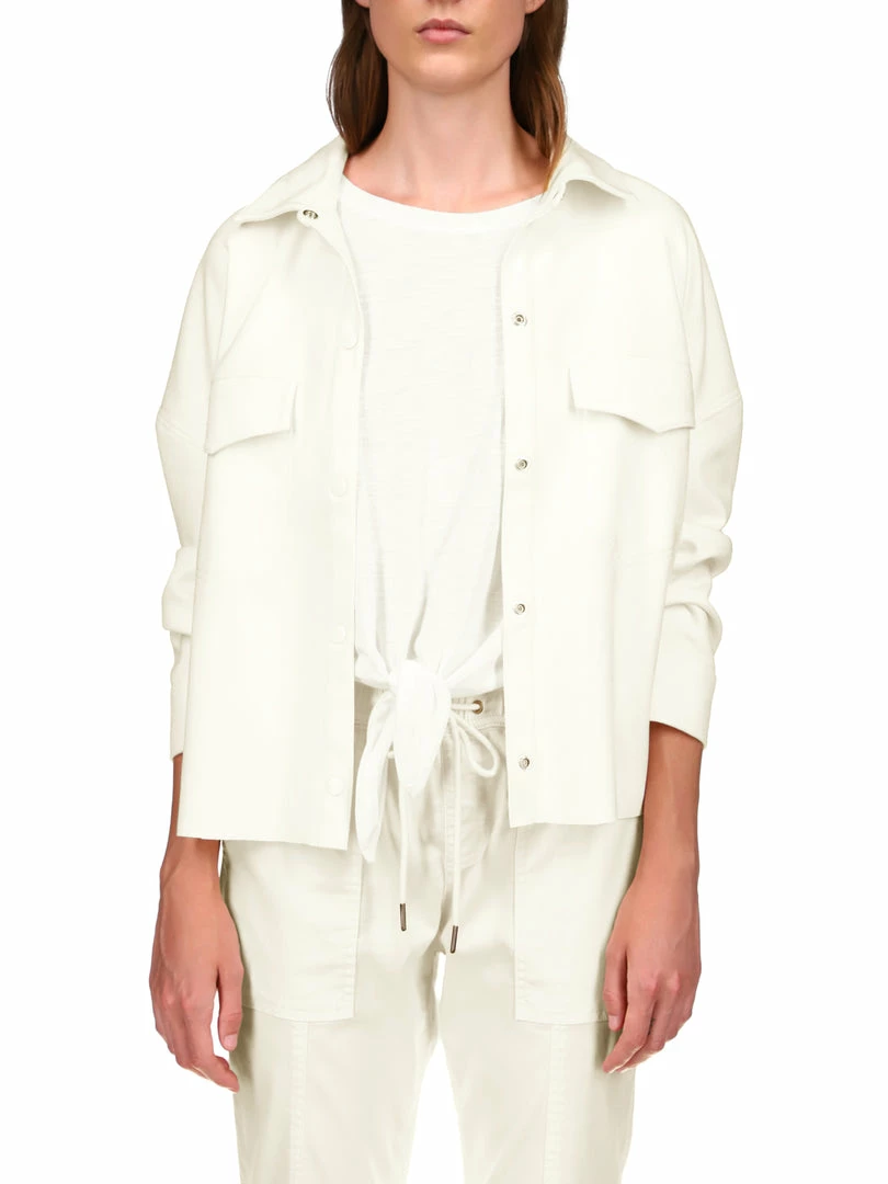 Made from a light faux suede fabric, this is the perfect shirt-jacket for all your spring ensembles. In a hip-grazing length, the Tori Shacket has a front seam detail with two flap pockets and snap closures at the cuffs.