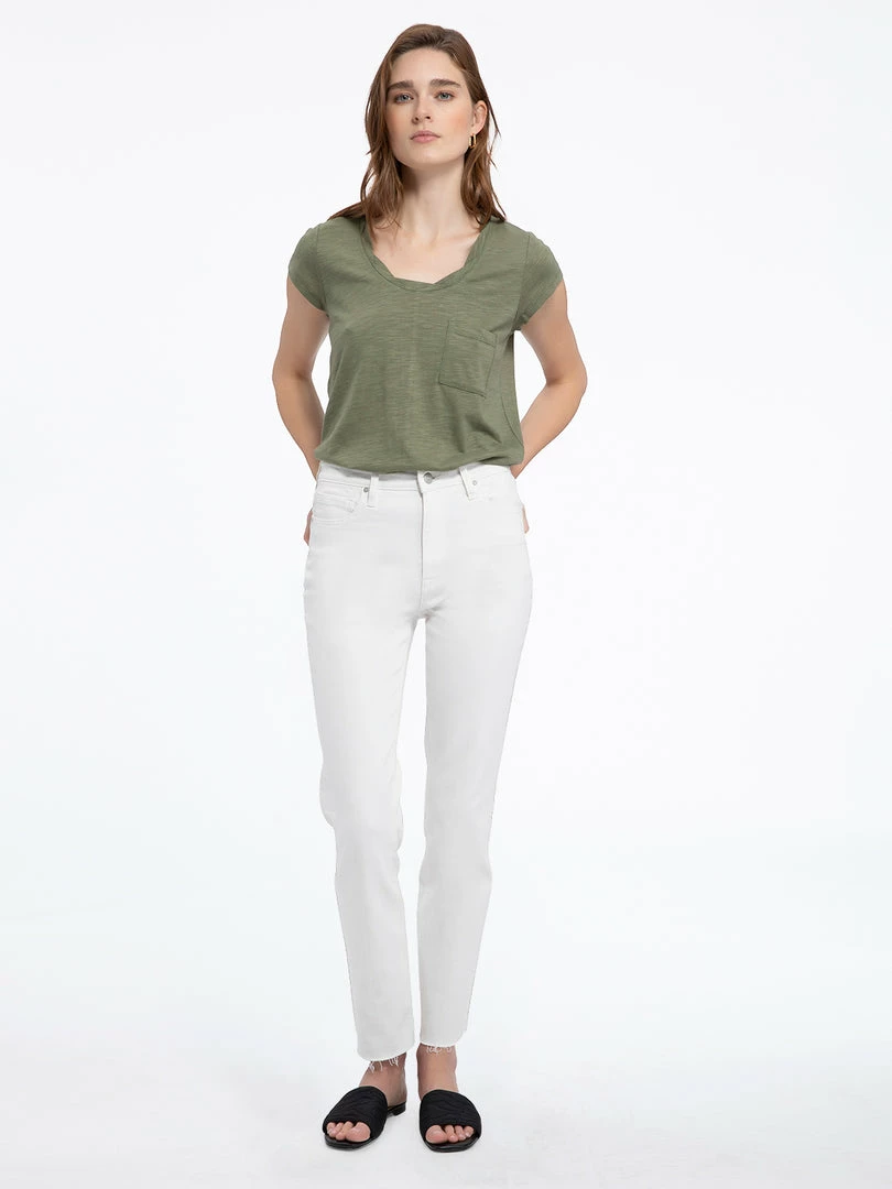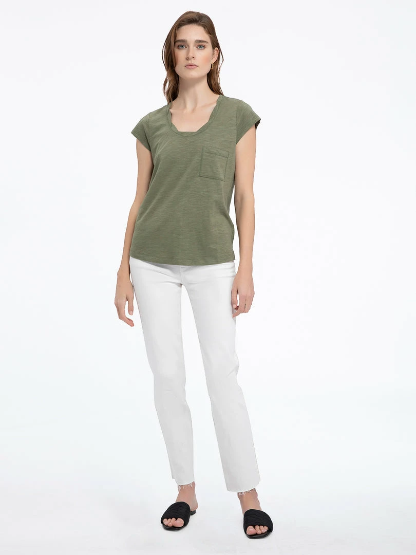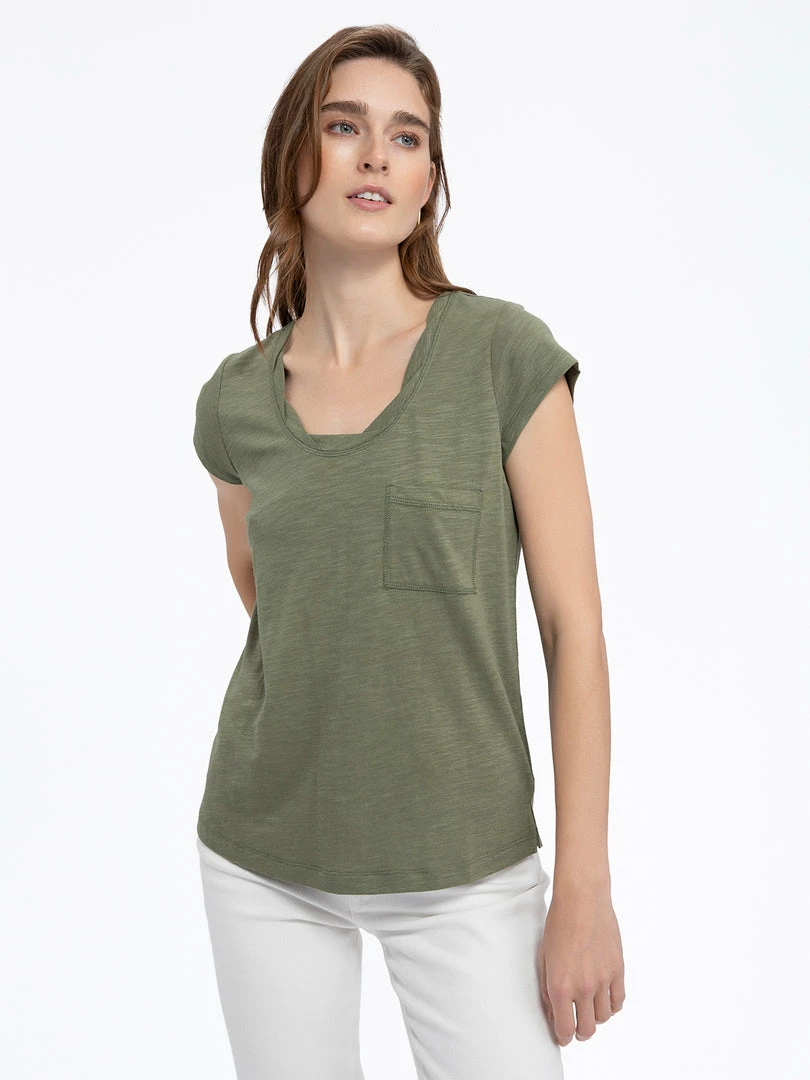 The Traveler Twist Tee is sure to be your new wardrobe staple. This ultra-soft cotton slub knit t-shirt has a classic scoop neck, short sleeves, and a loosely fitted bodice. A twisted neck detail brings the final touch to this sustainably made lightweight tee. We won’t blame you if you rock this essential not-so-basic every single day.