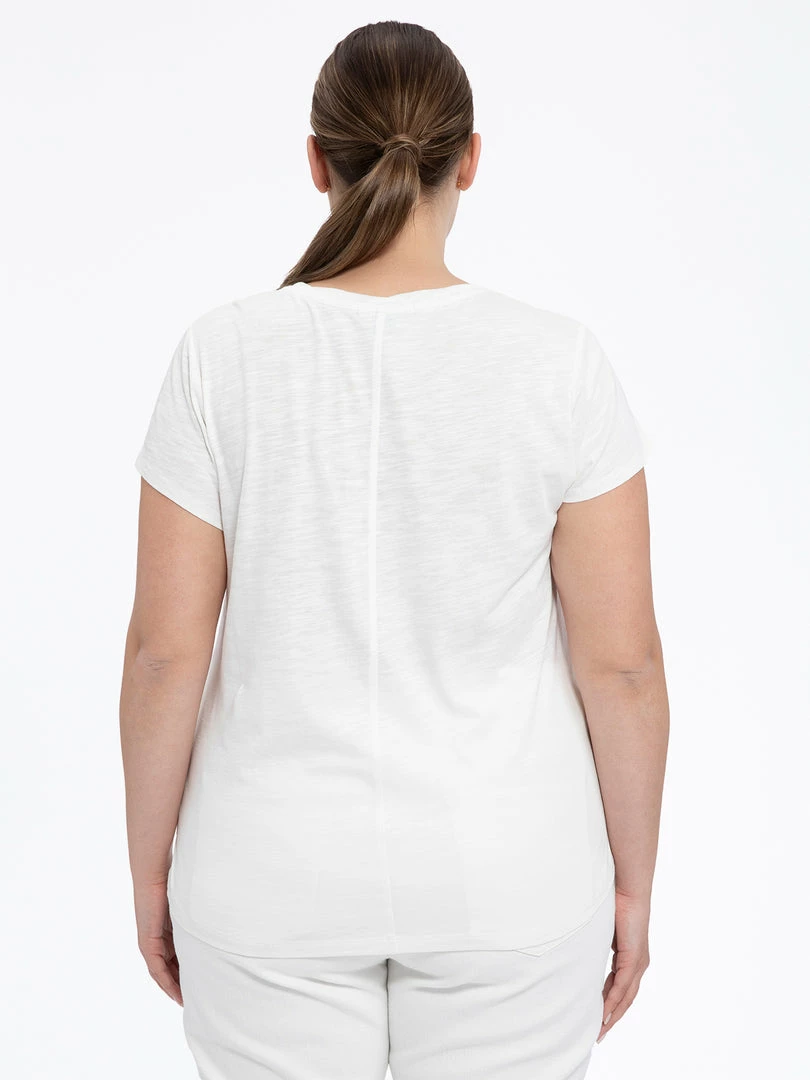 The Traveler Twist Tee is sure to be your new wardrobe staple. This ultra-soft cotton slub knit t-shirt has a classic scoop neck, short sleeves, and a loosely fitted bodice. A twisted neck detail brings the final touch to this sustainably made lightweight tee. We won’t blame you if you rock this essential not-so-basic every single day.