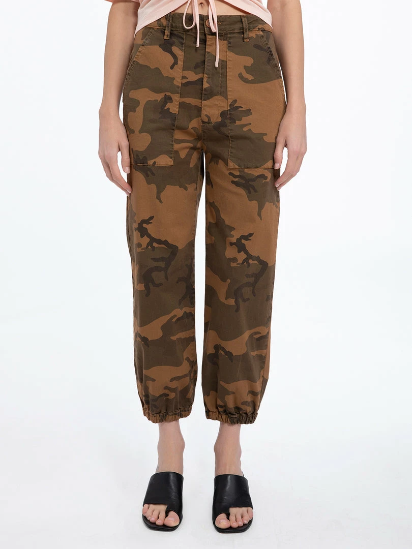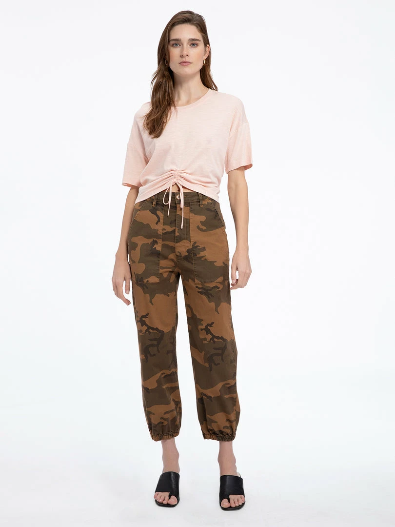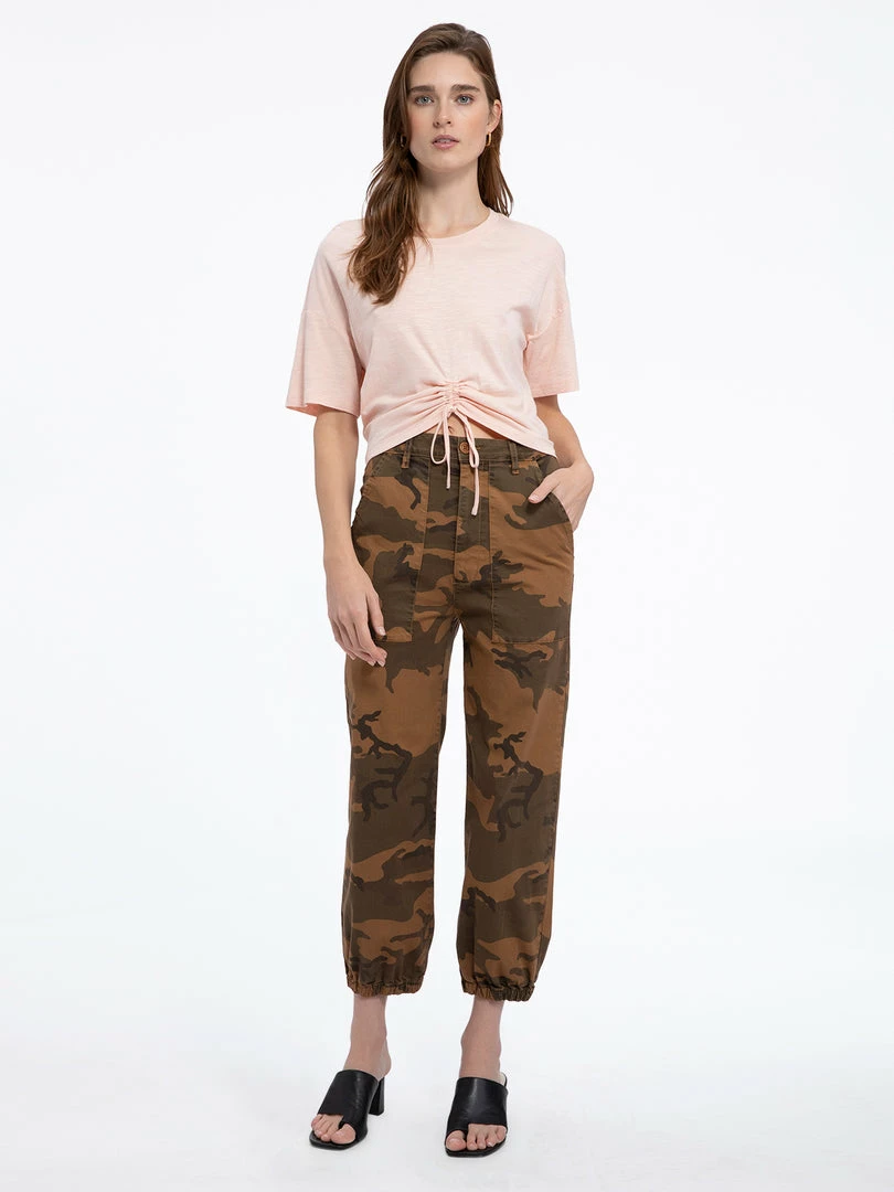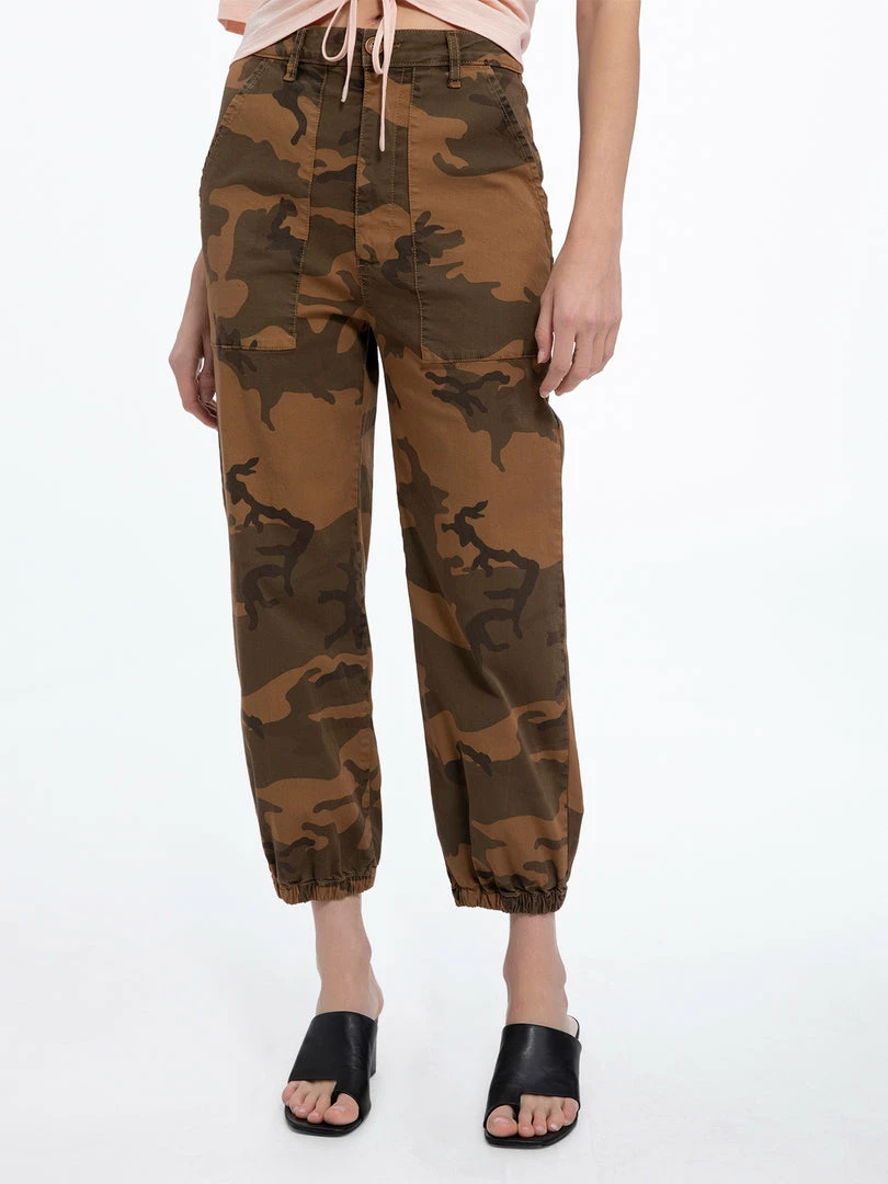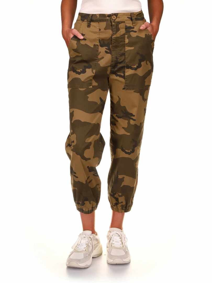 Get the on-trend surplus look with our Ventura High Rise cargo pants. Lightweight, stretch twill fabric shape a high waist with belt loops, a four-pocket cut, and a button/zip fly. A relaxed leg and elastic hem add an ultra laid-back vibe to these military-inspired fashion pant.