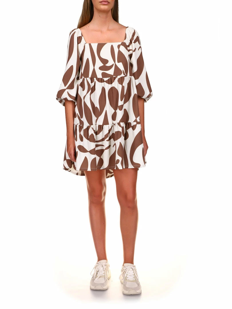 We’re in love with the flirty Weekender Babydoll Dress in Lion River. Lightweight woven crepe creates this super comfy dress with a square neckline, ¾ volume sleeves with an elastic hem, and a relaxed bodice. A loosely-fitted waist tops the ruffle-trimmed mini skirt that finishes off the babydoll silhouette. Pair with your favorite heels and you’re out the door.