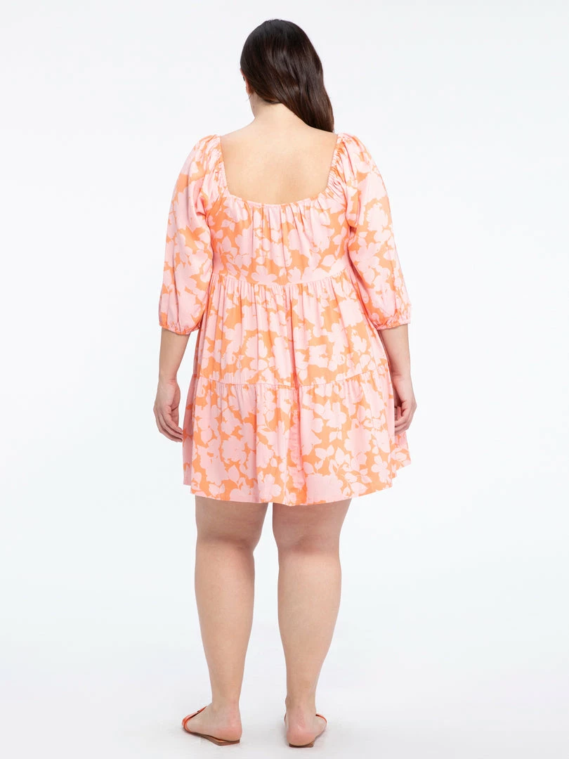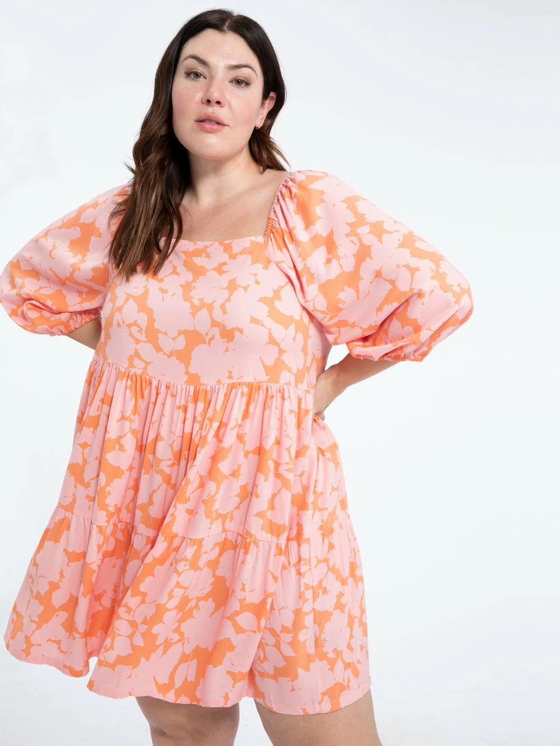 We’re in love with the flirty Weekender Babydoll Dress in Melon Field. Lightweight woven crepe creates this super comfy dress with a square neckline, ¾ volume sleeves with an elastic hem, and a relaxed bodice. A loosely-fitted waist tops the ruffle-trimmed mini skirt that finishes off the babydoll silhouette. Pair with your favorite heels and you’re out the door.